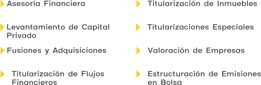 Un equipo multidisciplinario con vasta practica en soluciones financieras y una extensa red de inversionistas.
